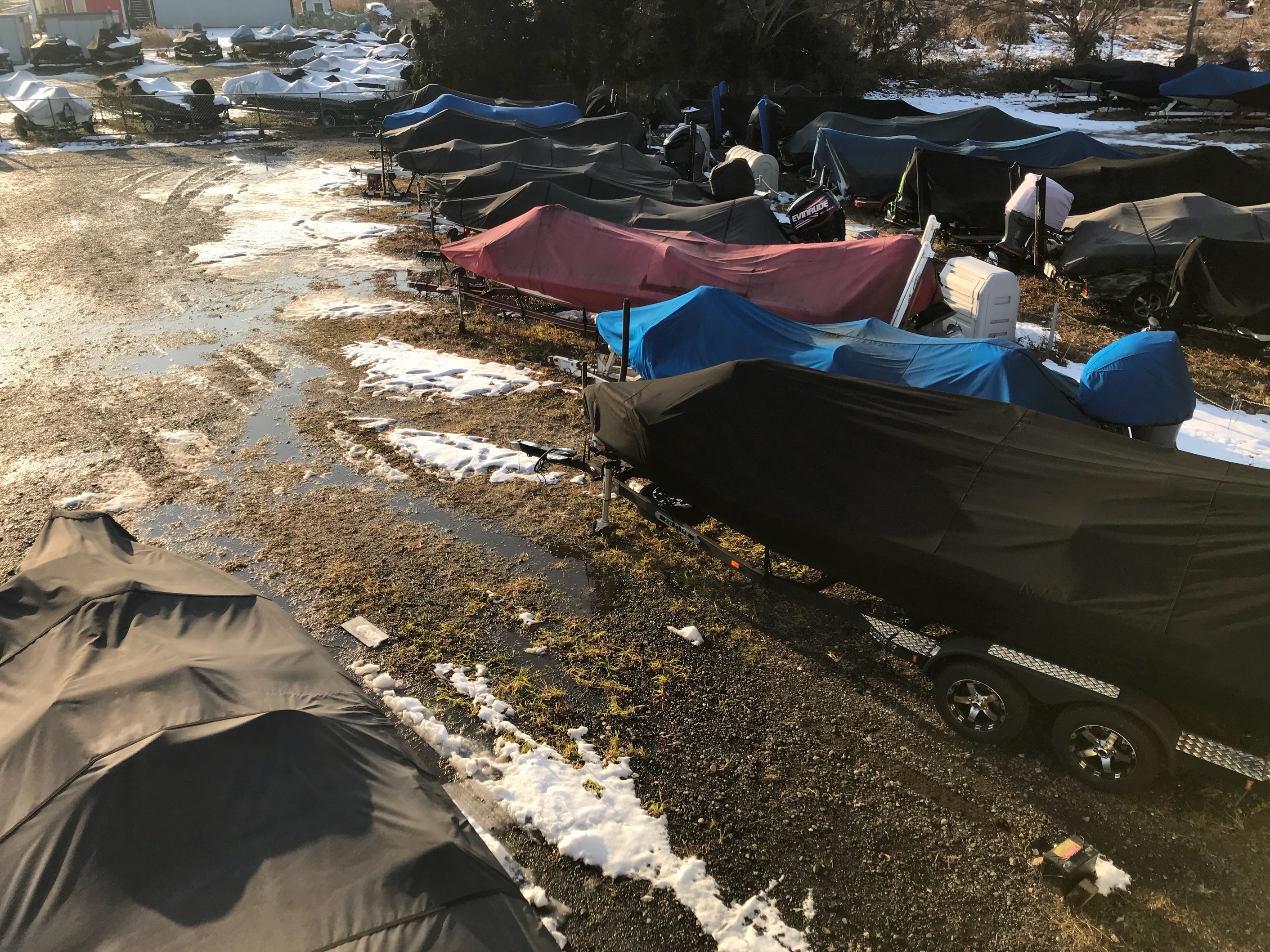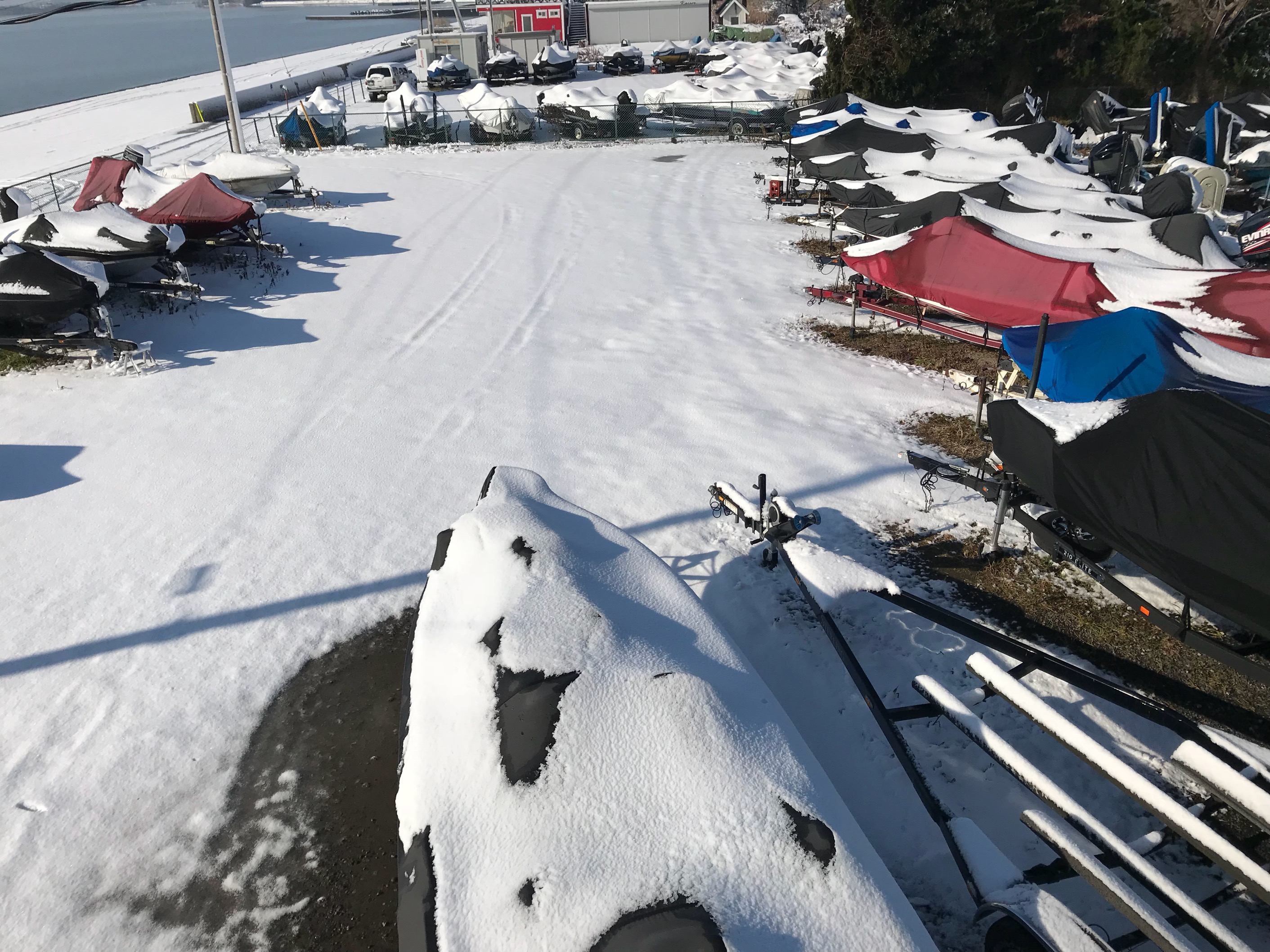 放っておいても解けますが、雪の重みで凹んだ所に水たまりとなり、ボートカバーが破れることも。