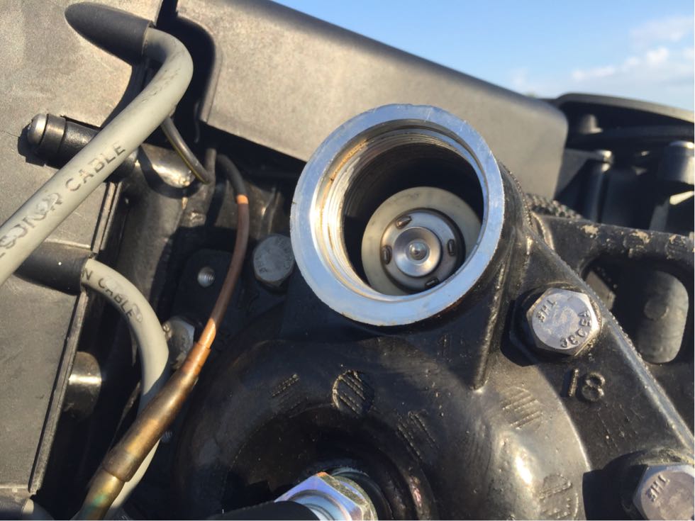 ホースの取り付け場所がシリンダーブロックの上部にあり、さらにトップカウルとの隙間がほとんど無いので、はさまっていたんでしょう。