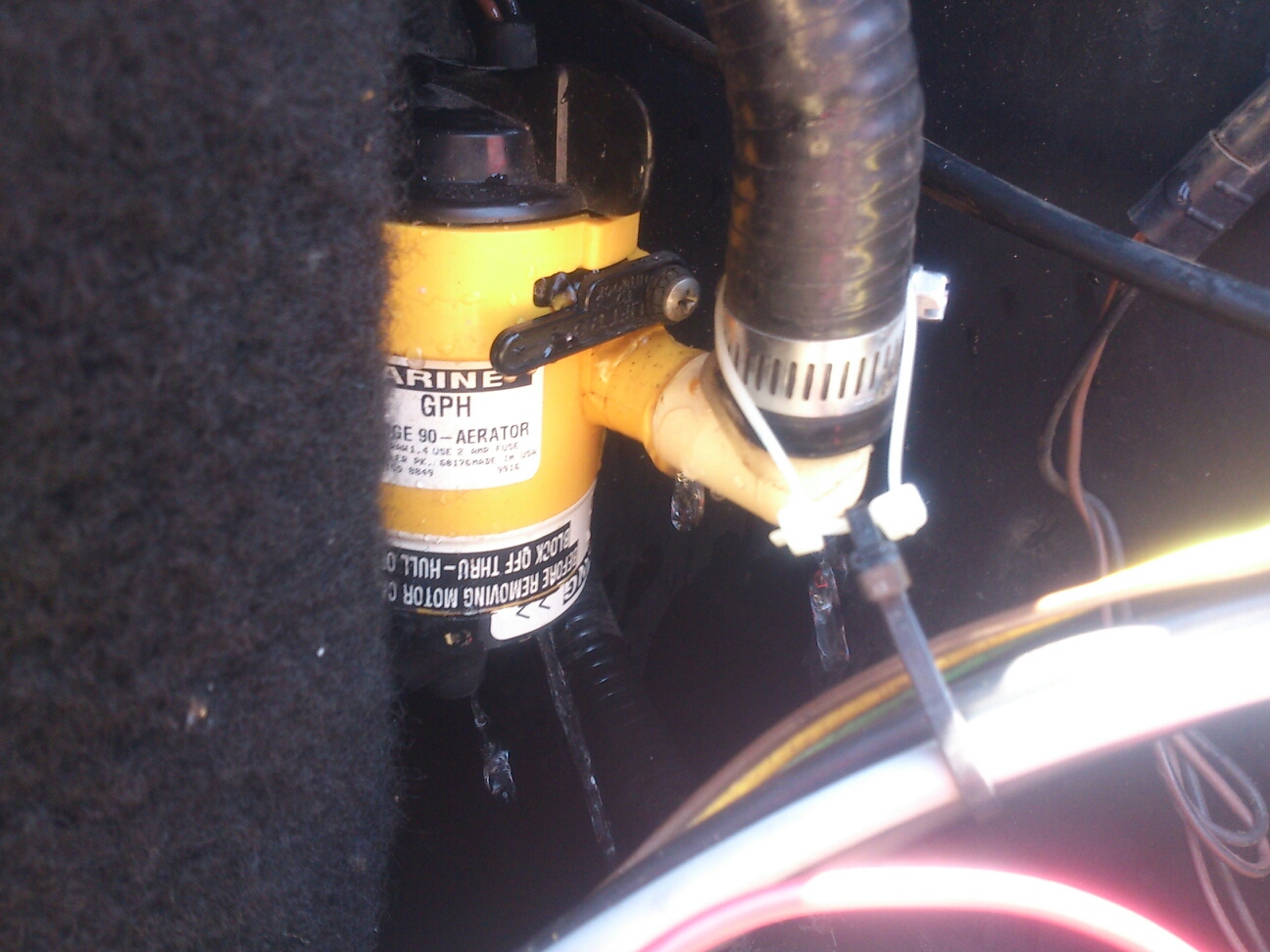 ライブウェル内の水が少ないうちは漏れなかったのですが、内循環ポンプの取り付け位置まで水がたまったとたんにダダ漏れになりました。